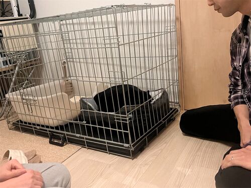 続いて、 今週末はお届け祭り。 まずは若松、 土曜日に譲渡会終わってから出発しました。 夜鳴きの危険はあれど トイレや食事に関しては然程デリケートそうではない気がしたので、 すぐに出るだろな…と寝る時留守番時用のケージ、 一段のを貸出。 うちに来た…